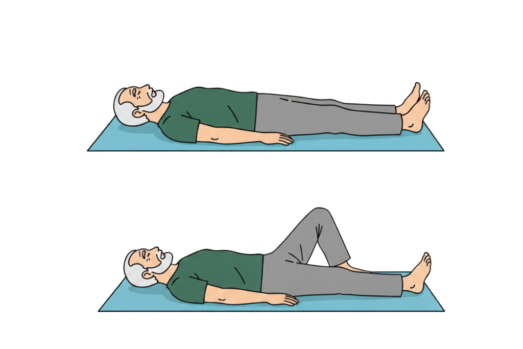 1. Lie on your back with your knees bent and feet flat on the floor.