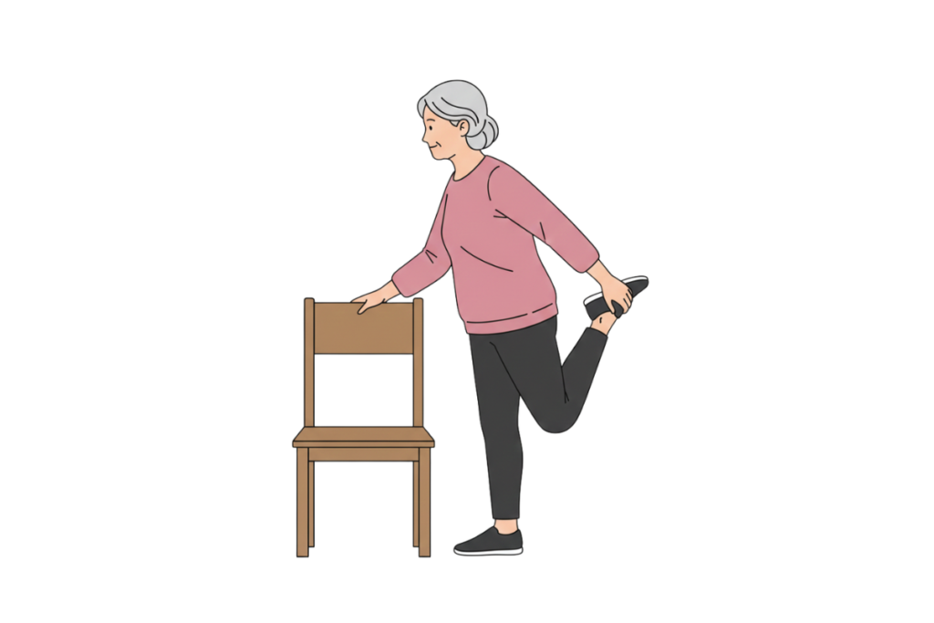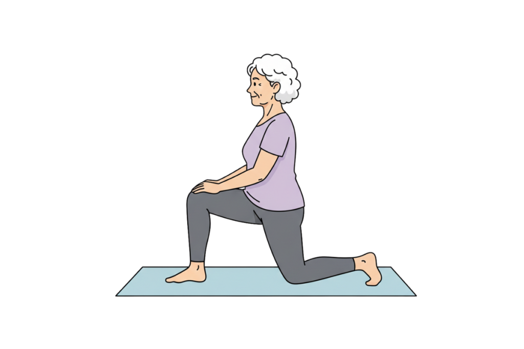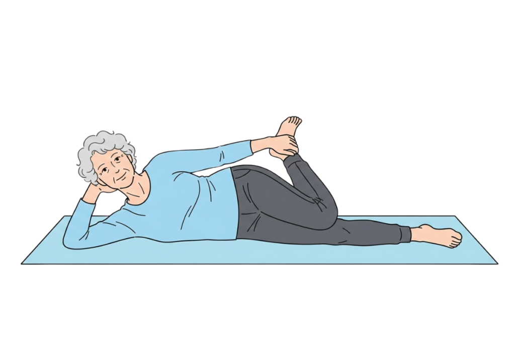 If standing feels unstable, this floor version still provides a strong stretch for your thigh, helping maintain knee flexibility and reducing stiffness.