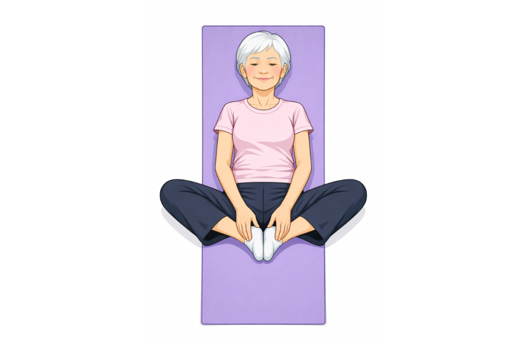 A gentle, relaxing stretch to finish up—this one releases tension in the inner thigh muscles that support the knee, promoting relaxation and flexibility.