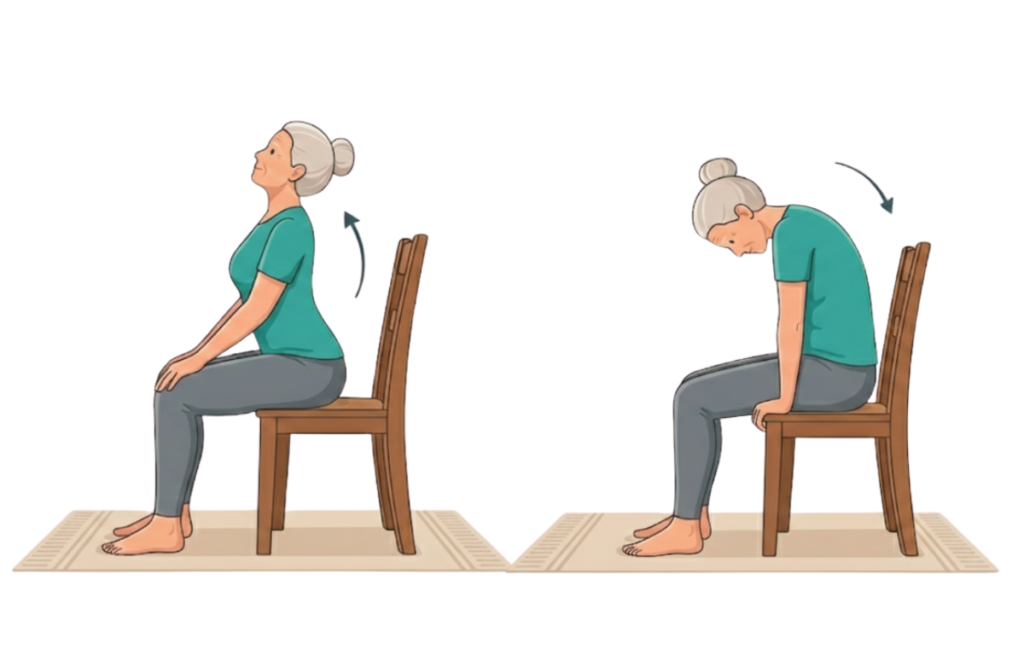 This guide is for beginners or anyone who wants relief without having to get down on a mat. These stretches are gentle, safe, and can be done standing or sitting. Think of them as little daily tune-ups for your spine. You don’t need to be flexible—you just need to try.