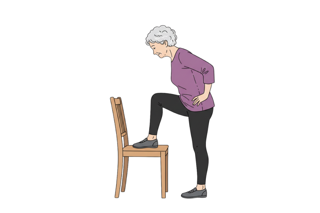 - Place one heel on the chair seat.